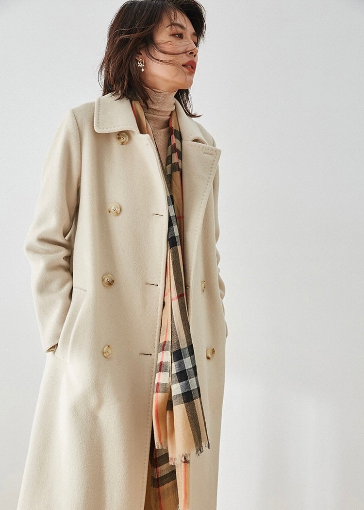 【Premium】カシミヤロングチェスターコート-アイボリー
