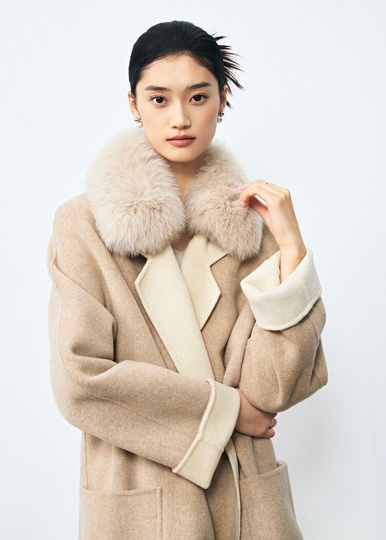 様々なシーンに合わせやすいよう、肩回りをリラックスしたデザインにし、シルエットも着膨れせず、ウエストはシェイプしすぎないバランスに仕上げました。 贅沢なリアルファーの付き襟もアクセントになっております。